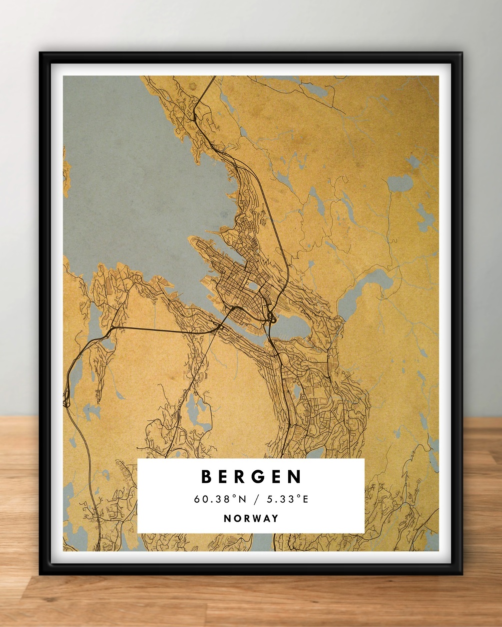 BERGEN, Norway – Digital Map Poster – Retro