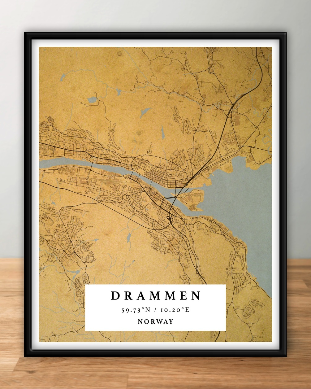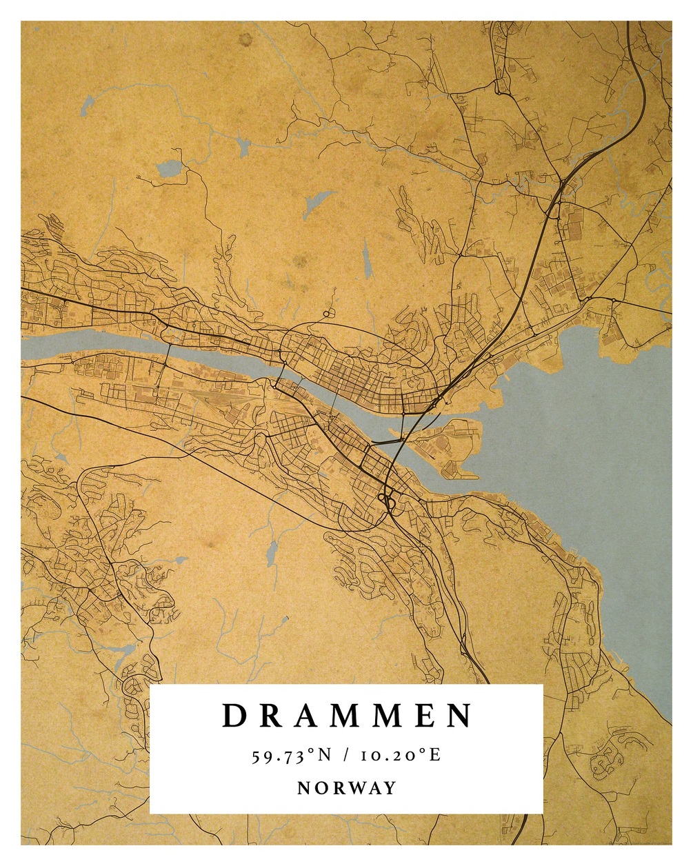 DRAMMEN, Norway – Digital Map Poster – Retro