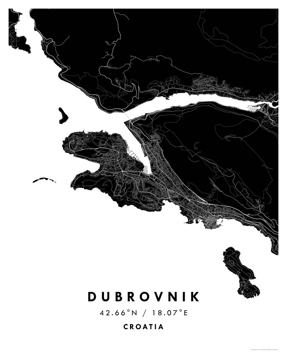 DUBROVNIK, Croatia – Digital Map Poster – Black