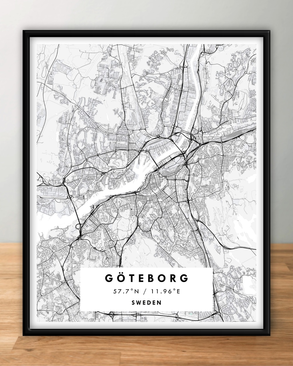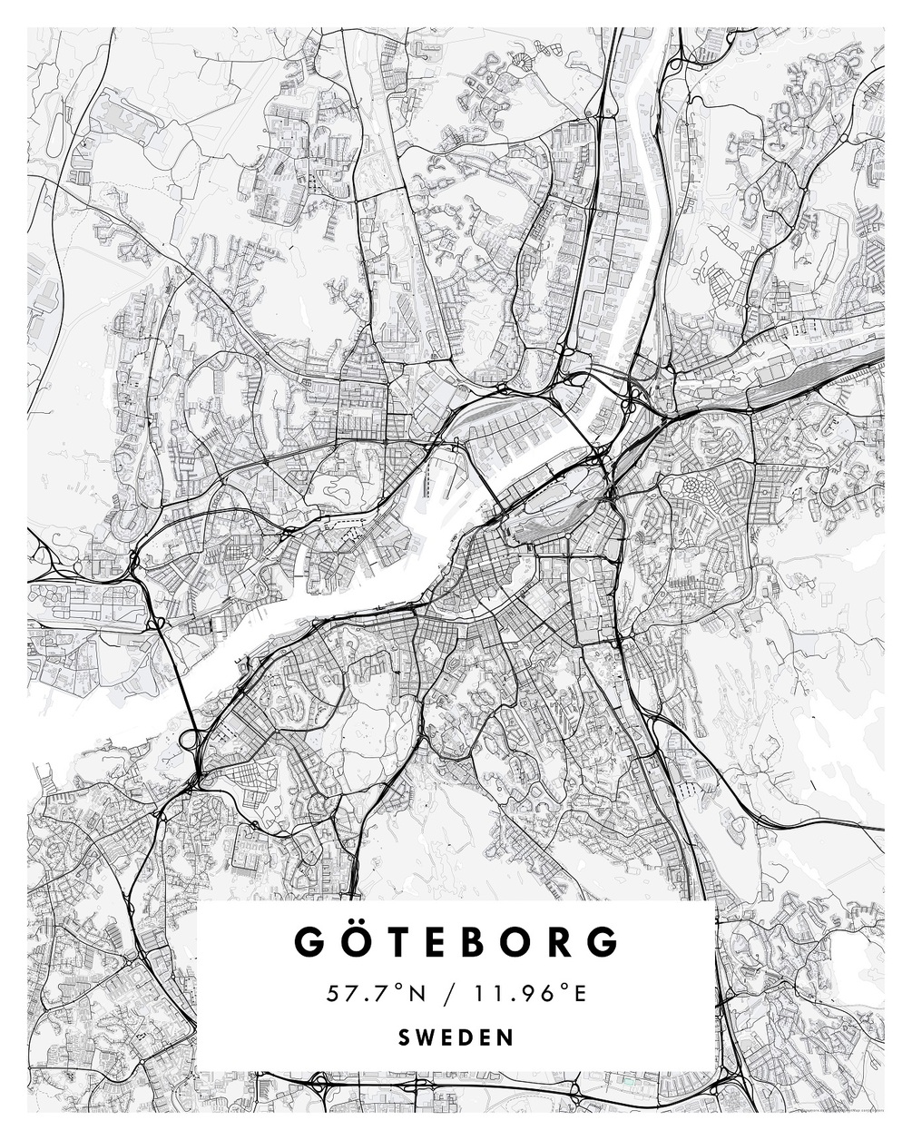 GÖTEBORG, Sweden – Digital Map Poster – White
