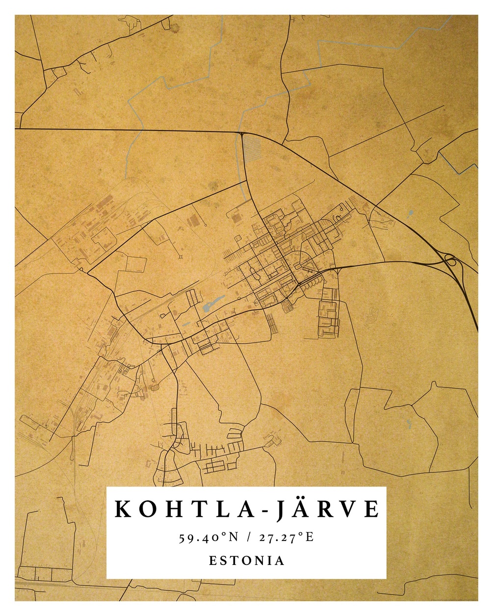 KOHTLA-JÄRVE, Estonia – Digital Map Poster – Retro