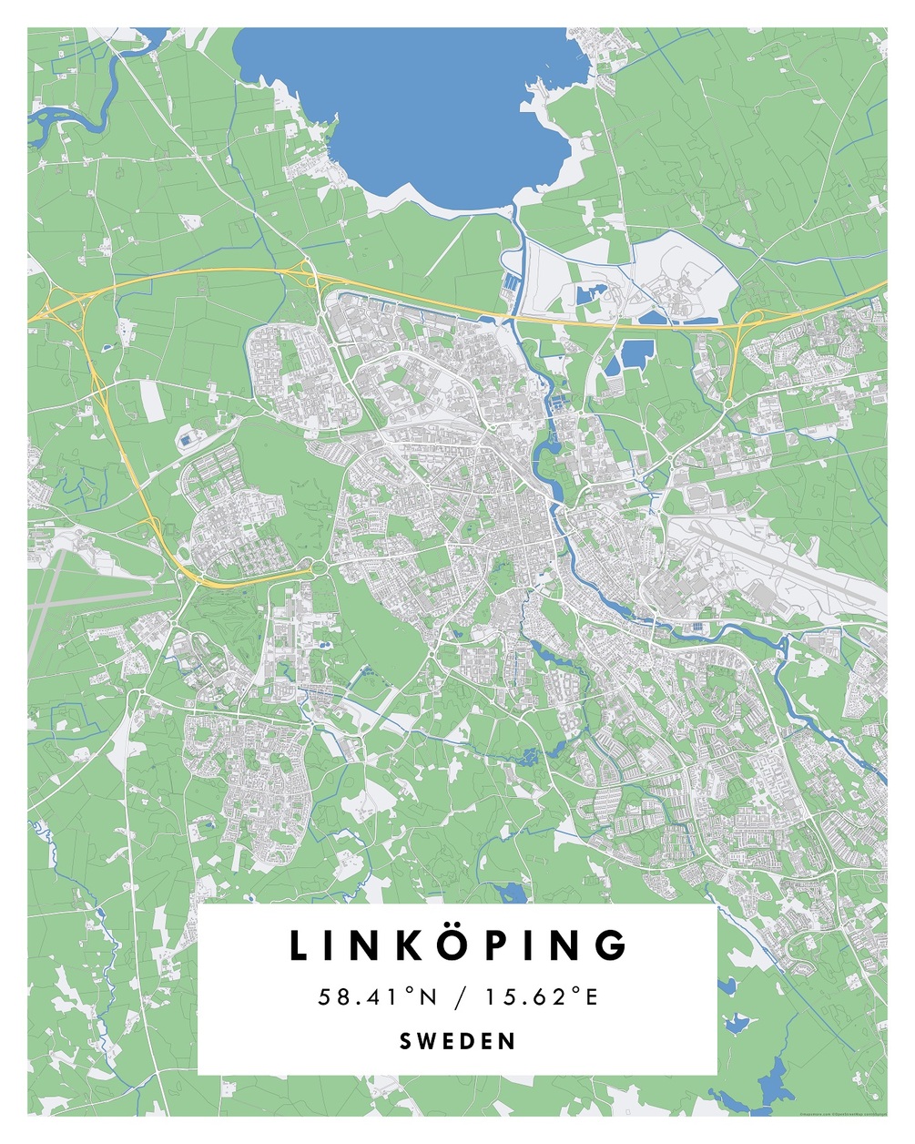 LINKÖPING, Sweden – Digital Map Poster – Geographical