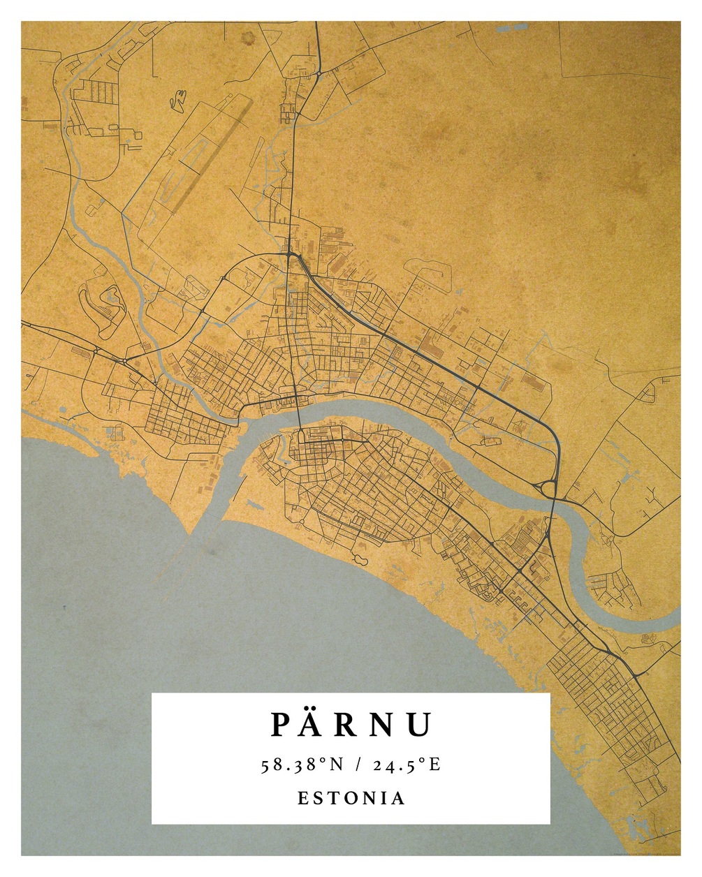 PÄRNU, Estonia – Digital Map Poster – Retro