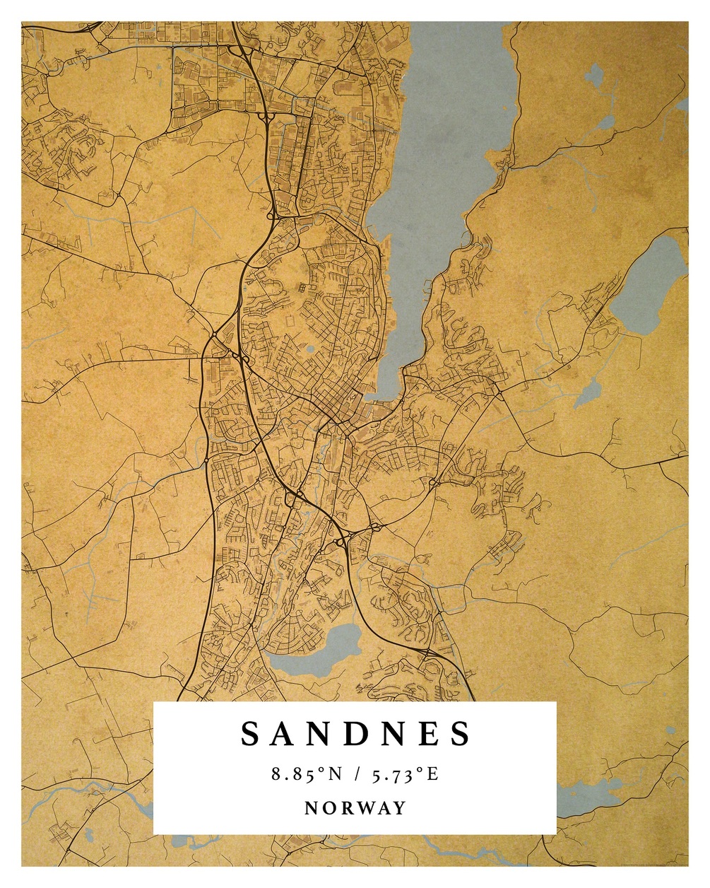 SANDNES, Norway – Digital Map Poster – Retro