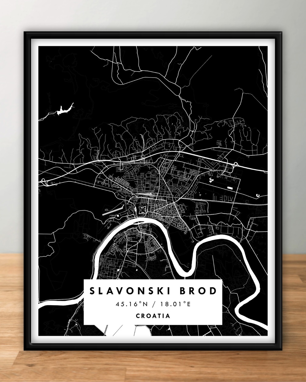 SLAVONSKI BROD, Croatia – Digital Map Poster – Black